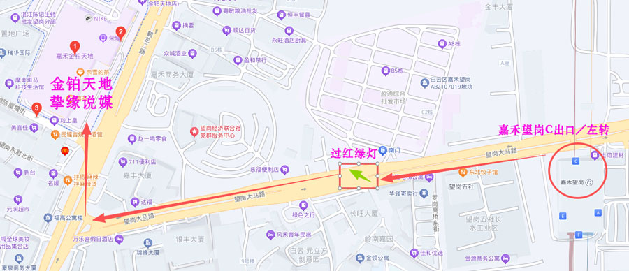 公交地铁:地铁2、3、14号线/嘉禾望岗C出口